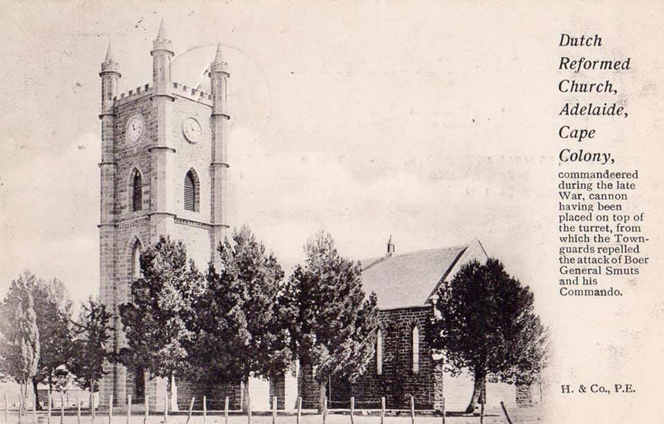 During the Anglo-Boer War (1899 – 1902), the British forces defending Adelaide at the time commandeered the well-built Dutch Reformed church for their headquarters and barracks, making use of the 30m high tower as a gun emplacement. The congregants of the church were not very happy. Once the war was over and the British troops had left, the Dutch Reformed community set about trying to restore the damage done to the interior of their church. There was little money available and their donation drive did not yield enough for the refurbishment of the pews and pulpit.