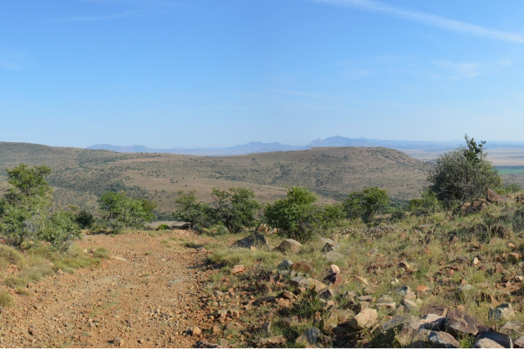 The “Koppie” (hillock) can be recognized by a buttress about three meters high. During the Boer war a British soldier wrote the inscription on the buttress; “The heavens declare the glory of God, the firmament showed his handy-work” (sic). The inscription is preceded by a crucifix, and ended with a crown, as are the inscriptions of “Oukop”. Returning via the same route, or continue down the trail in a north, north-westerly direction. At the end of the trail is a gate at the main road. There are two options: