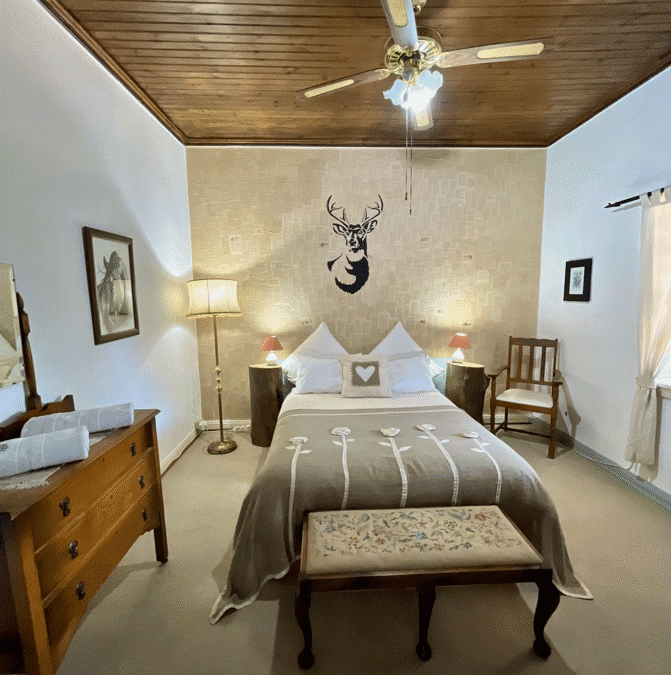 Hillston Cottage was built from ironstone in the late 1800’s. The cottage has 3 bedrooms, a bathroom with bath and shower and separate toilet. There is an open plan kitchen, dining room and family lounge with under-floor heating. Relax on the front veranda and watch the sun set with the guinea fowl and hadeda signaling the end of the day or have breakfast at the wooden combo set. Enjoy a braai in our Boer War Blockhouse lapa or outside in the garden.