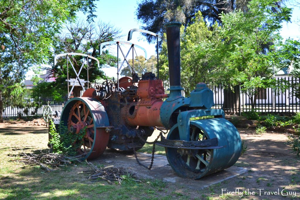 The steam roller was bought in 1938 to build streets and to prepare a few streets for tarring.