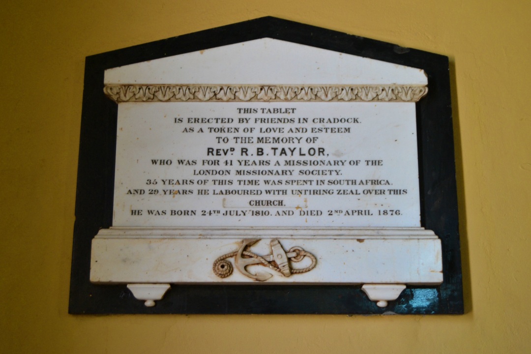 As a result of a London Missionary Society outreach programme, a congregational church was started in Cradock in 1820. Rev George Baker, who was born in Essex in 1789 and who had come to South Africa in 1815 to serve as a missionary with the LMS, moved to Cradock as the town’s first preacher in 1821. John Munro, who was in charge of the Bethelsdorp congregation, also moved there in December 1839 to become the town’s first teacher at the Congregational School. He worked in Cradock until his retirement in 1846.