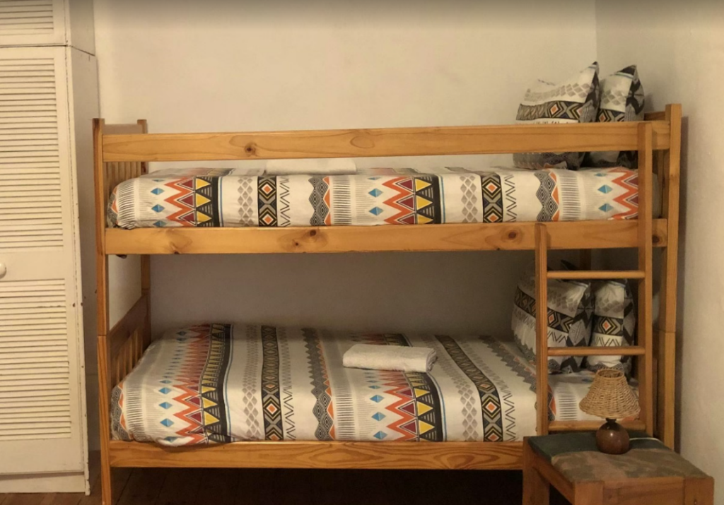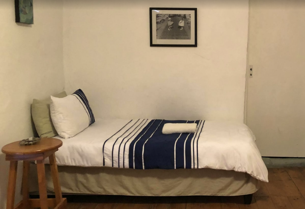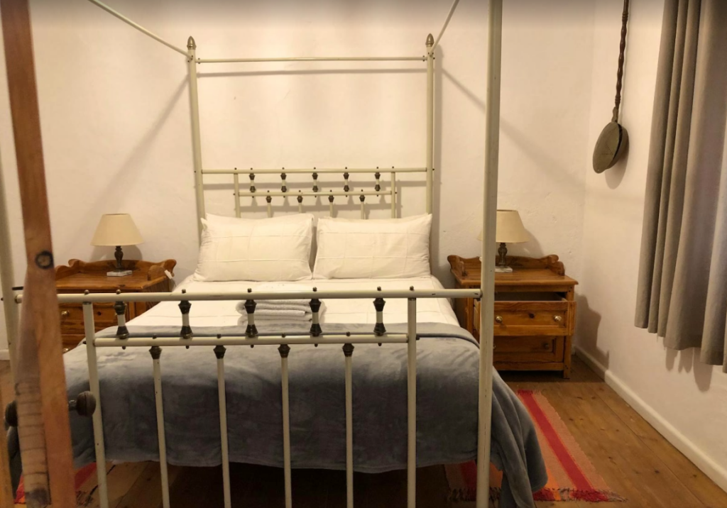 This traditional old Karoo house has three bedrooms, 2 with double poster beds and a third family room with a single bed and a double bunk bed.