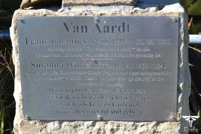 The third heritage site is the grave of the Van Aardts. The Van Aardts have been farming at Roodewal for many generations.