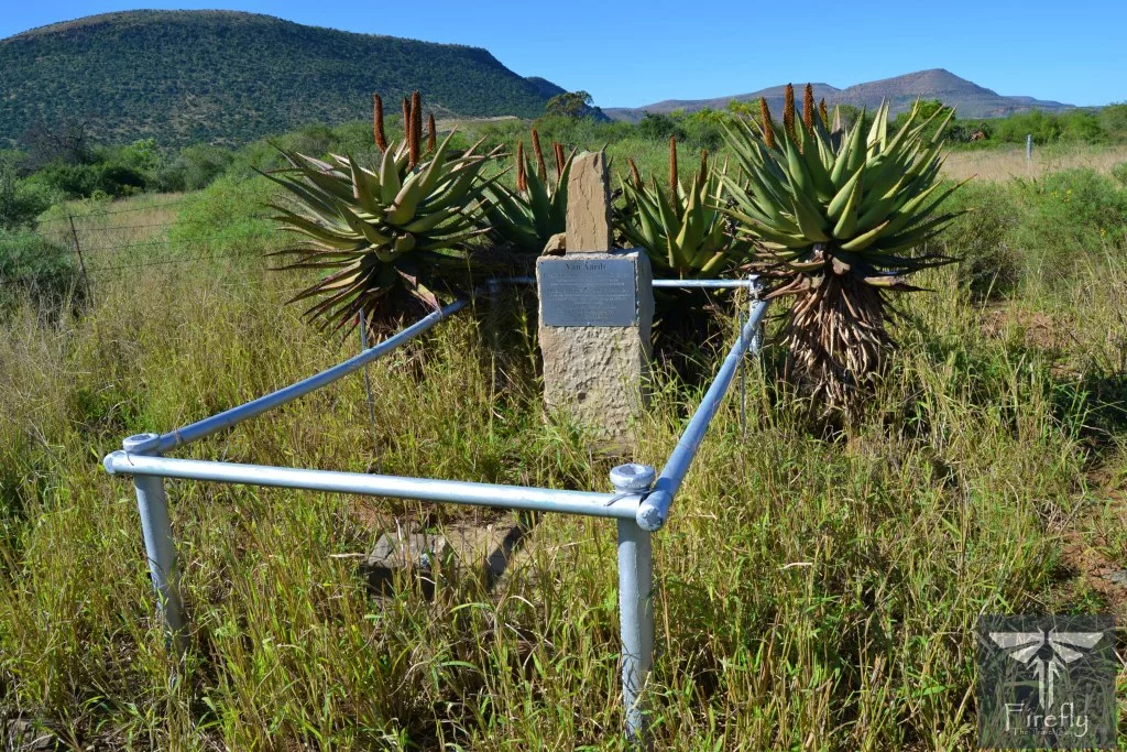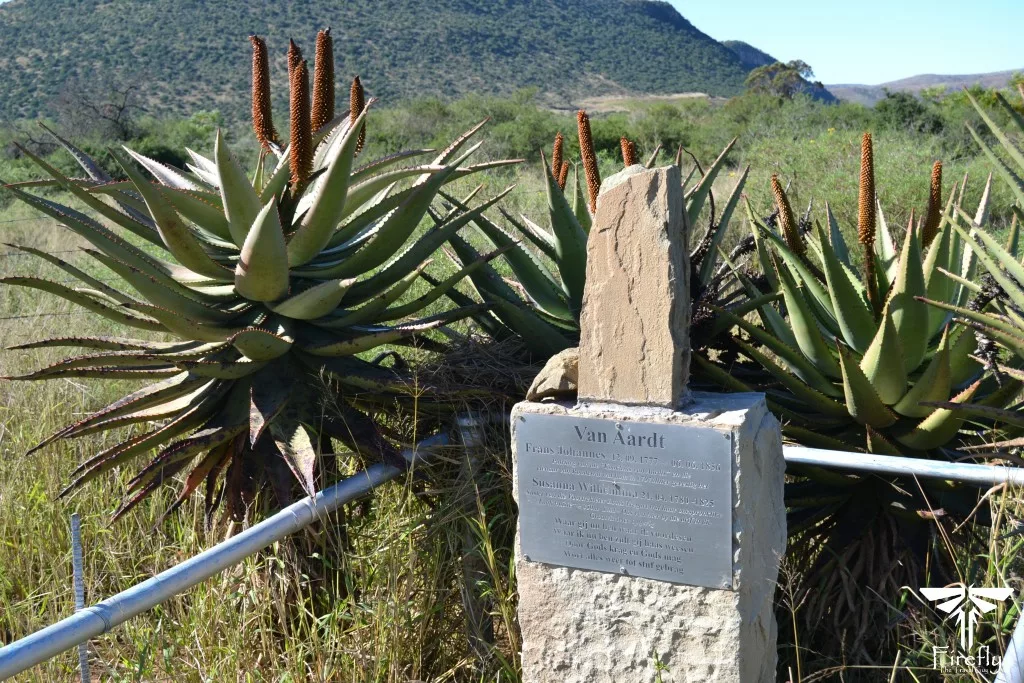 The farm is still family-owned after more than 200 years. It is currently owned by Willem Petrus van Aardt, a descendant of Frans Johannes and Susanna Wilhelmina van Aardt, a well-known Merino farmer of the Eastern Cape. Willem was searching for and identifying the graves of his ancestors. With the help of an old farmworker the grave of Frans Johannes Van Aardt, was found near the Fish River. He was born on the 12th September 1777 and died 6 June 1856. His two wives are buried with him. The first wife was Susanna Wilhelmina Tregardt (married 21st October 1798) and Maria Johanna Mentz MENTZ married 11 Mar 1826.
