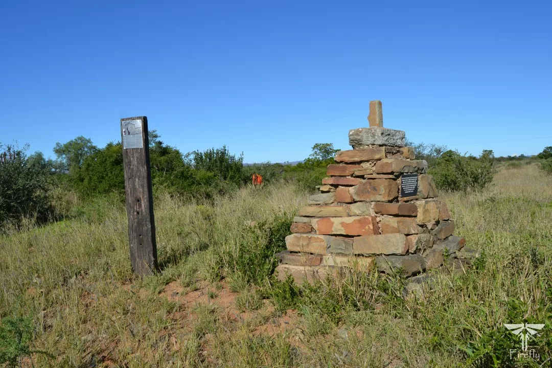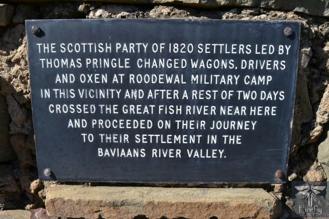 The first site, and the one pointed out by the road sign on the N10, is a small stone pyramid relating to the Pringle party’s rest camp. It was at this site that a Scottish party of British Settlers stopped in 1820 en route to their new settlement in the Baviaans River Valley.