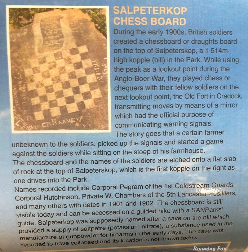 During the last 1800s, British soldiers created a chessboard on the top of Saltpeterskop, a 1514m high koppie in the Mountain Zebra National Park near Cradock.