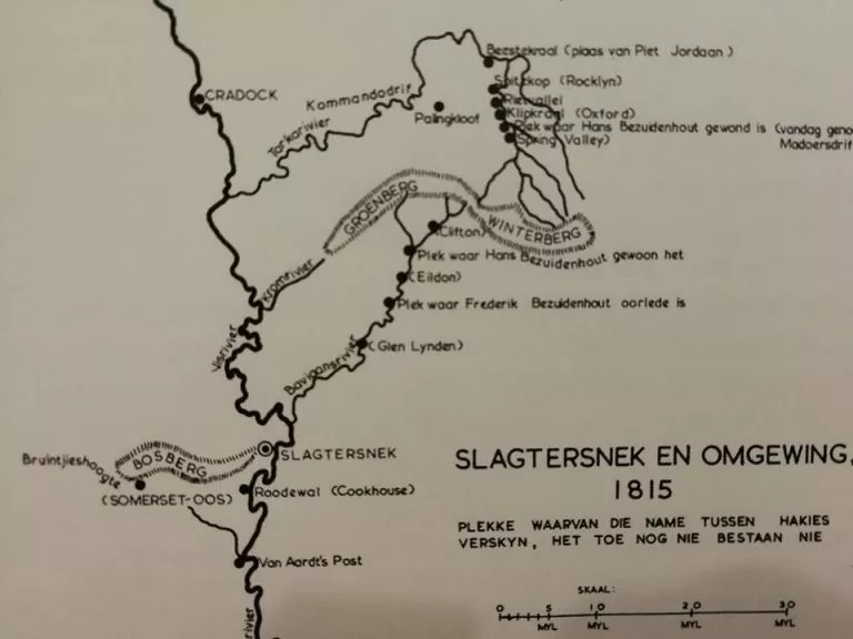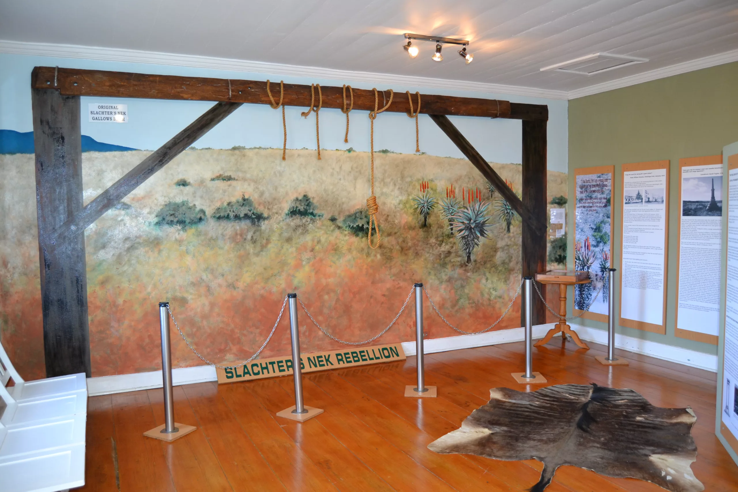 Back in the early 1800s this area was the eastern border of the Cape Colony. In 1815 a farmer from the district, Frederik Bezuidenhout, was summoned to appear before a magistrate after repeated allegations of his mistreating one of his Khoi labourers. Bezuidenhout resisted arrest and fled to a cave near his home where he defended himself against the soldiers sent to capture him. In the process, he was shot dead by one of the soldiers.