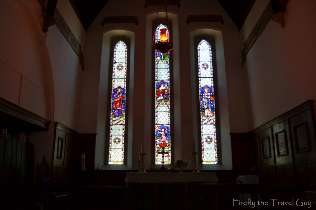 Urquhart gave 20 pews in memory of the Bishop of Aberdeen, Scotland, as well as nine stained glass windows and the stone font. Bishop Cotterill visited Cradock for a few days in 1858, arriving on Friday 18 June. On the following day he confirmed seven candidates ”being the first service held in the church, now nearly completed”. There were two full services on the Sunday and on Monday afternoon [21 June 1858] the Church, dedicated to St Peter, was consecrated.