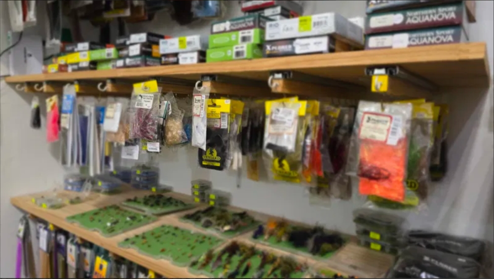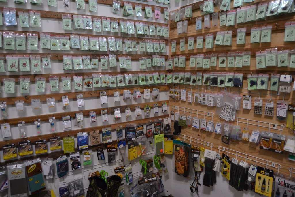 The shop has a very good selection of fly tying materials from Wapsi to Hareline, including thread, capes, tinsel, eyes and hooks.